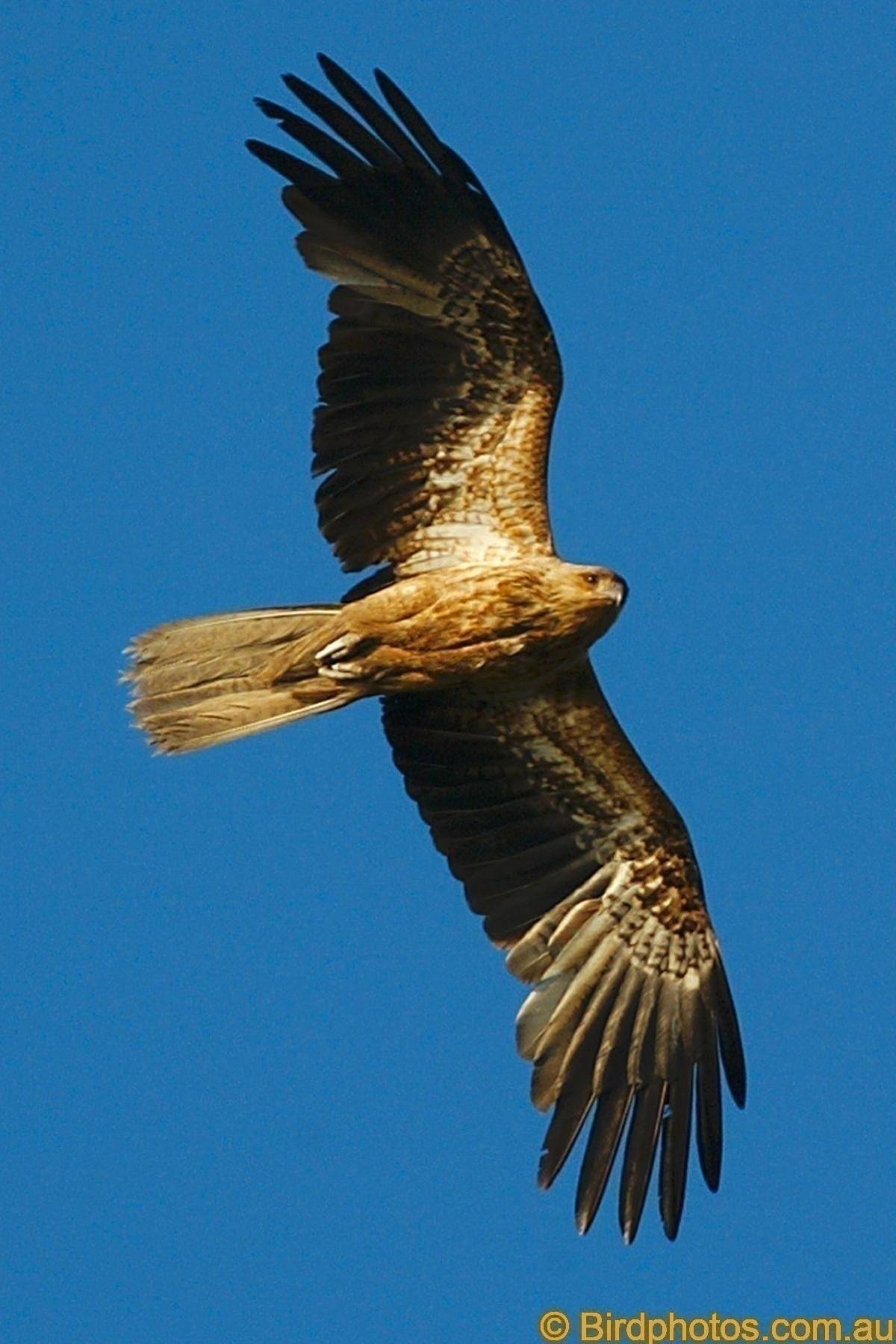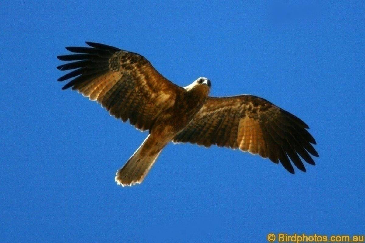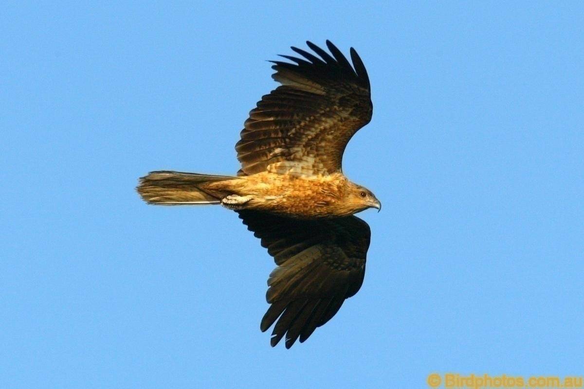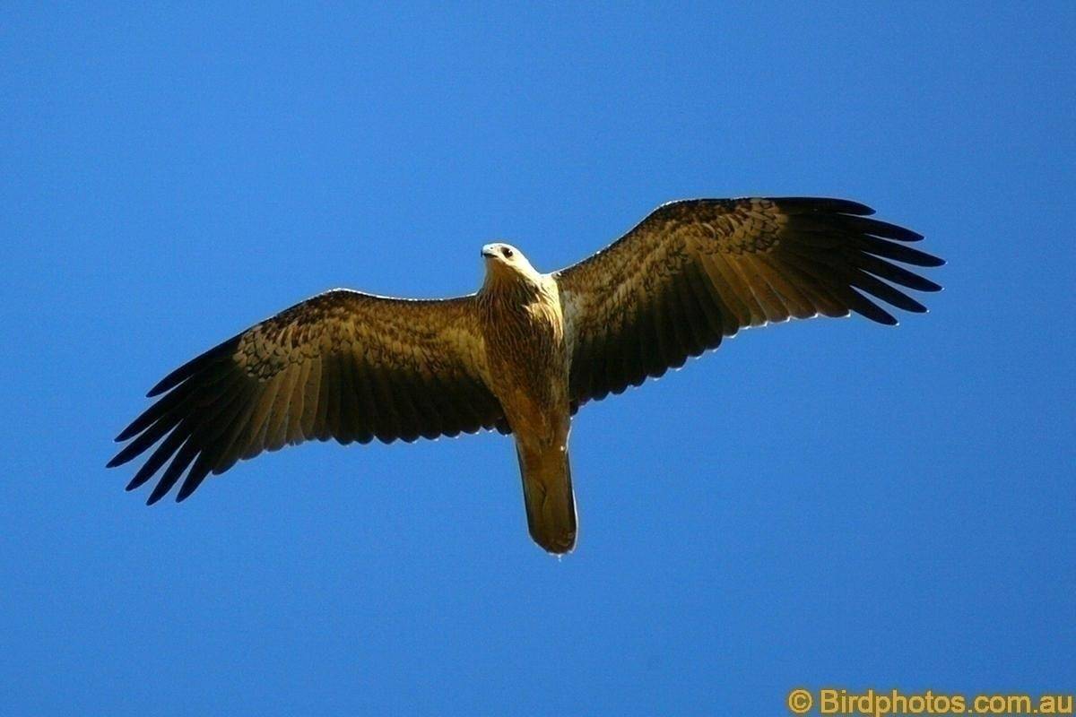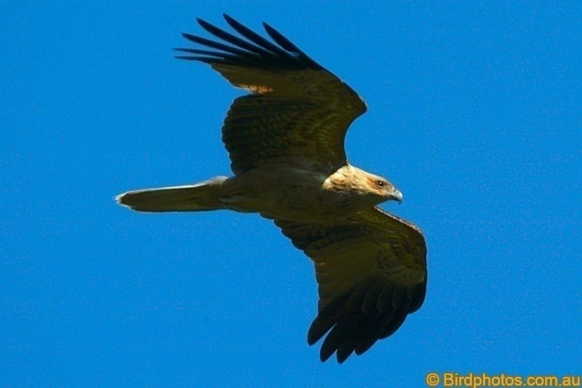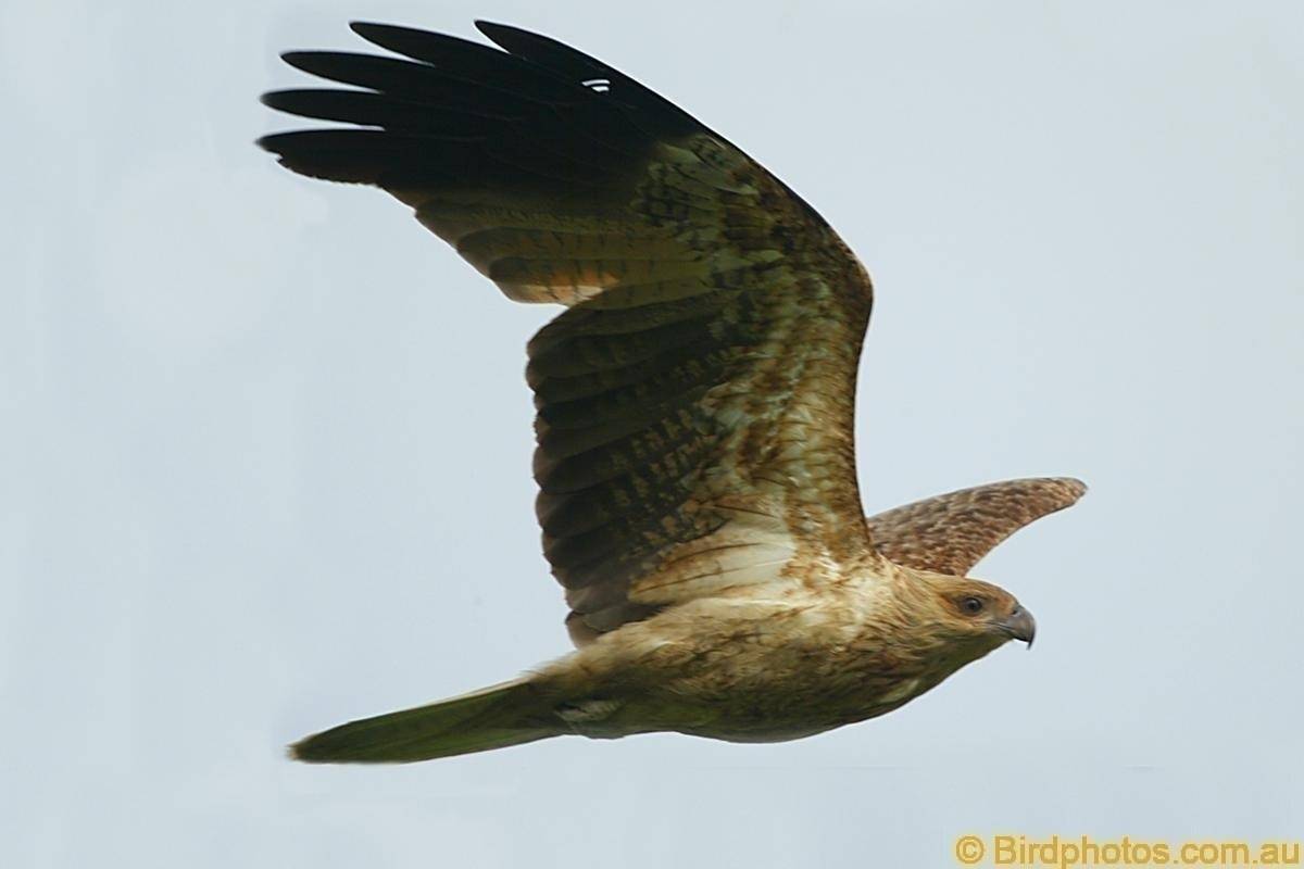 Size: 52-59cm Habitat: Distributed Australia wide, this raptor can be seen soaring over grasslands, woodlands, swamp, plains and seashores. Feeds on carrion, fish, small mammals and other birds. Notes: Head, chest and belly light brown with pale streaks, wings dark brown, long rounded tail in flight. Breeds Winter-Spring.