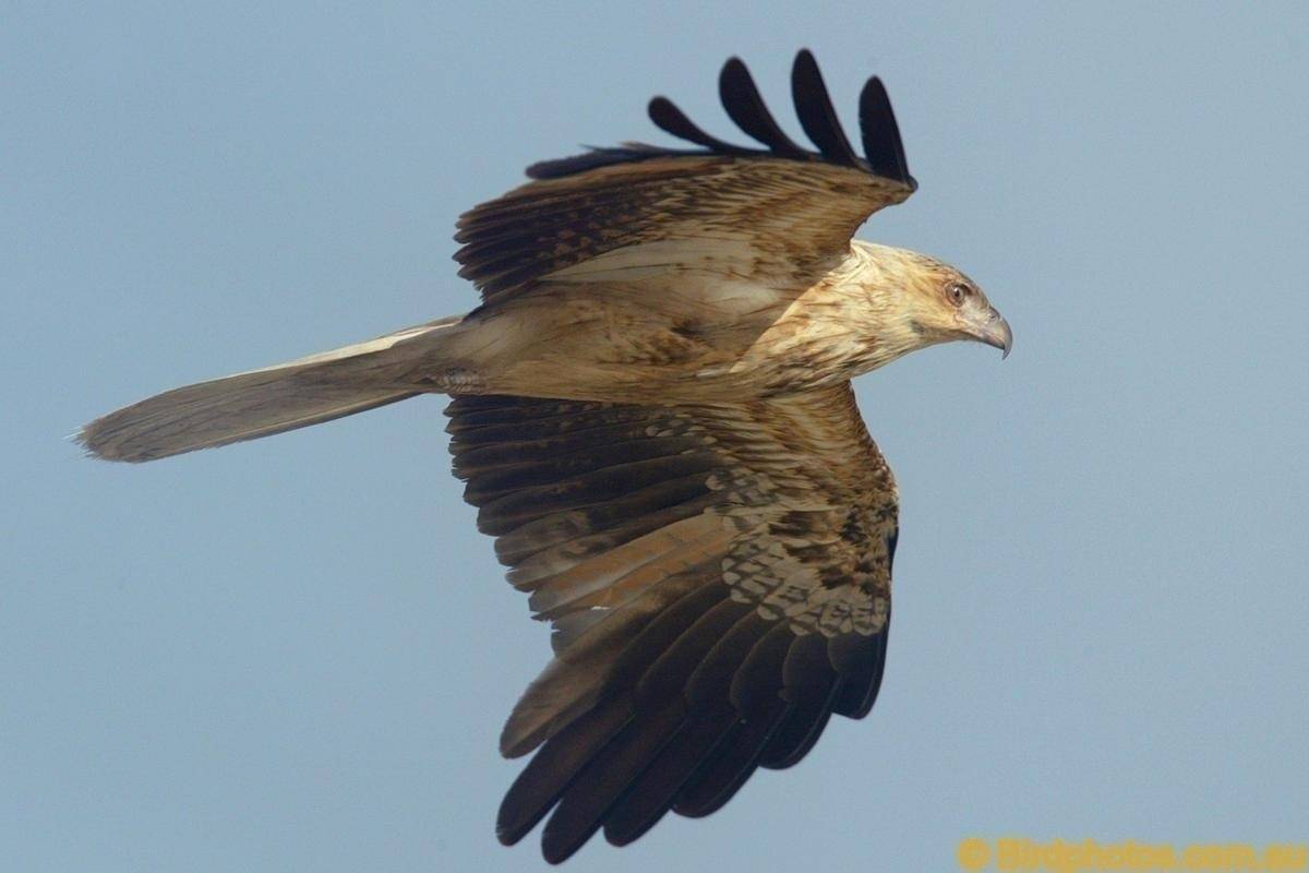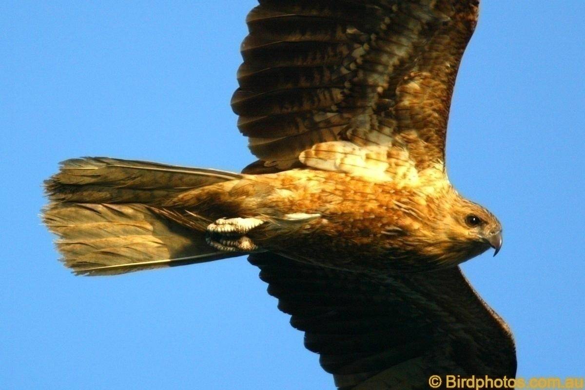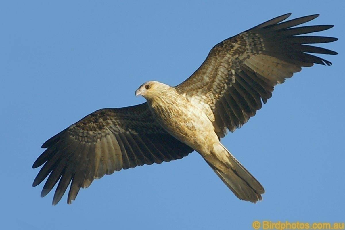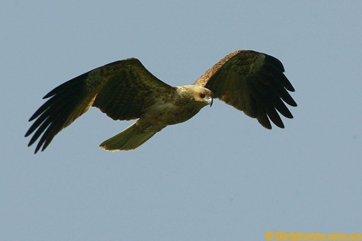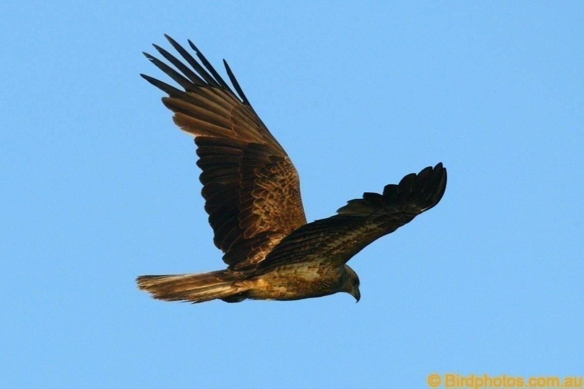 Size: 52-59cm Habitat: Distributed Australia wide, this raptor can be seen soaring over grasslands, woodlands, swamp, plains and seashores. Feeds on carrion, fish, small mammals and other birds. Notes: Head, chest and belly light brown with pale streaks, wings dark brown, long rounded tail in flight. Breeds Winter-Spring.