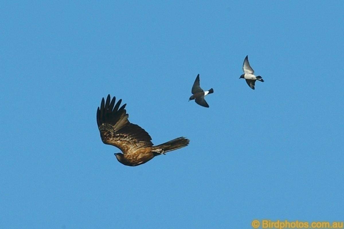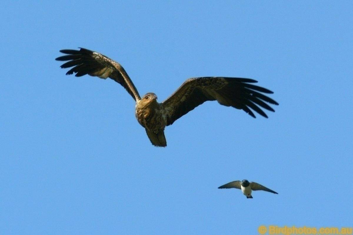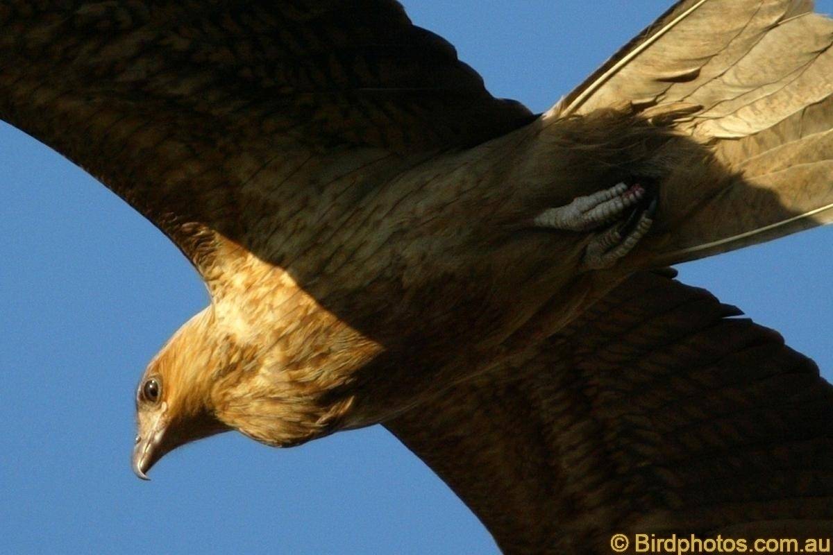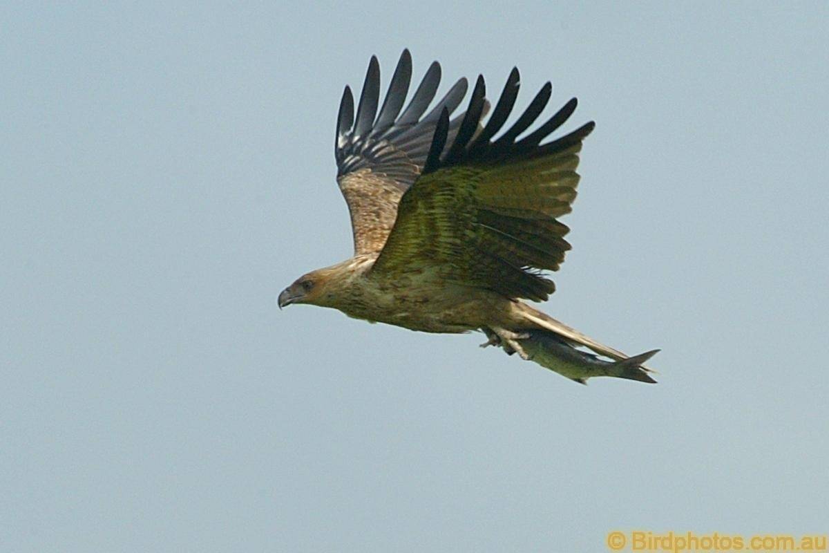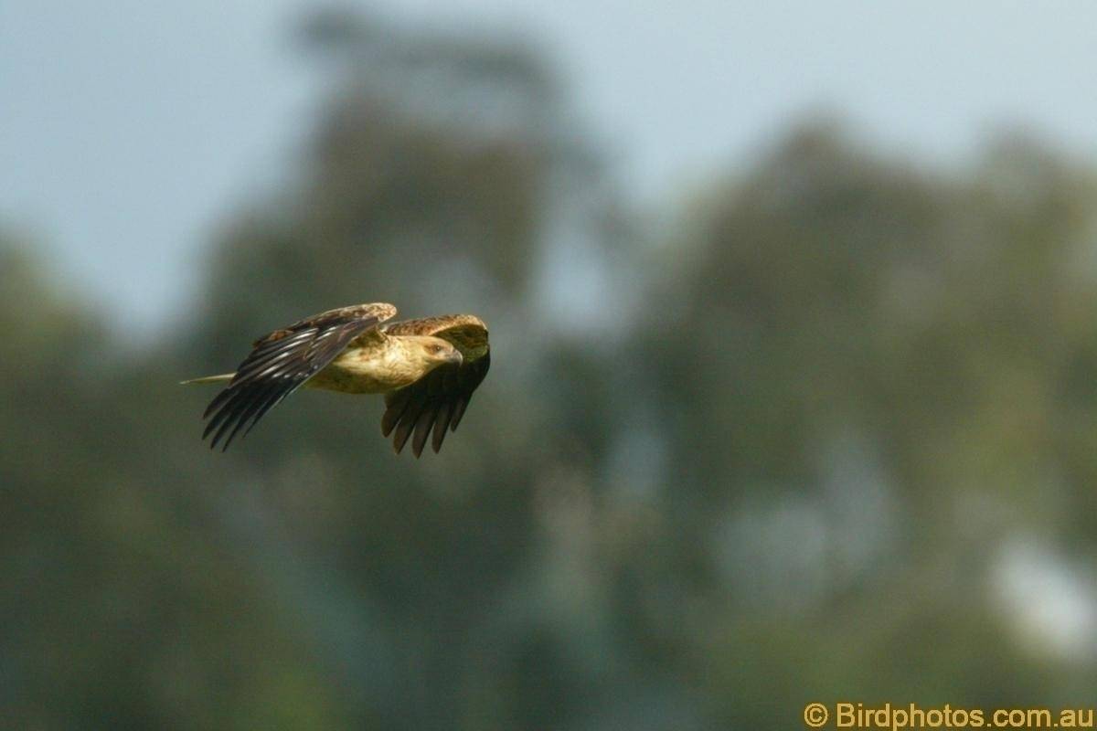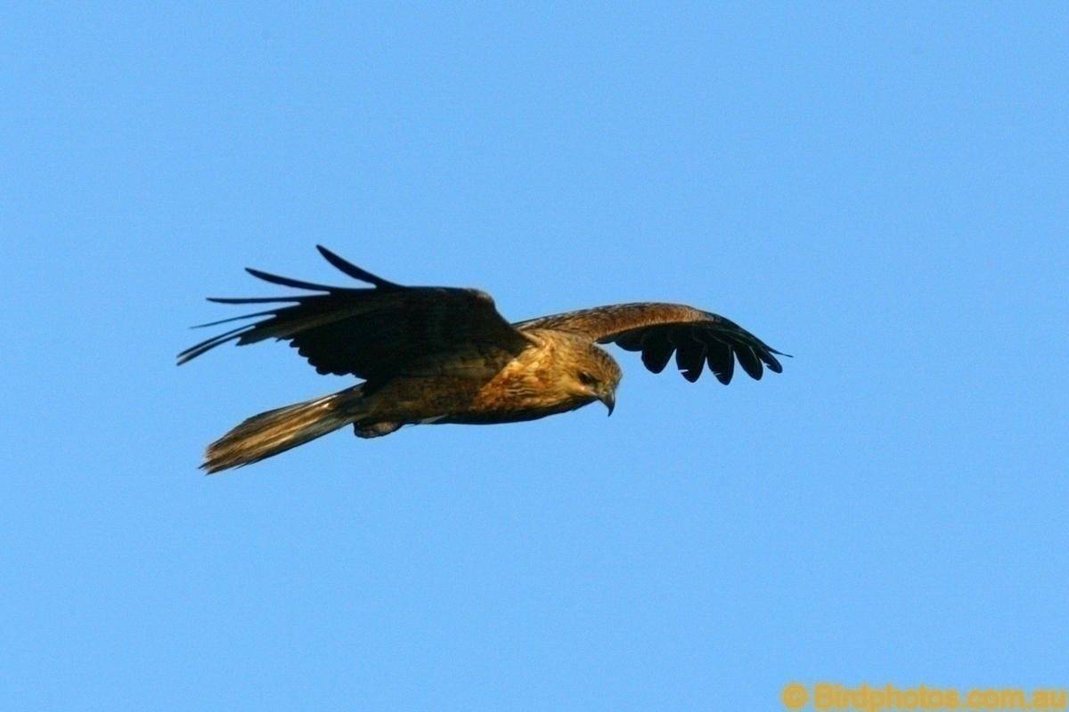 Size: 52-59cm Habitat: Distributed Australia wide, this raptor can be seen soaring over grasslands, woodlands, swamp, plains and seashores. Feeds on carrion, fish, small mammals and other birds. Notes: Head, chest and belly light brown with pale streaks, wings dark brown, long rounded tail in flight. Breeds Winter-Spring.