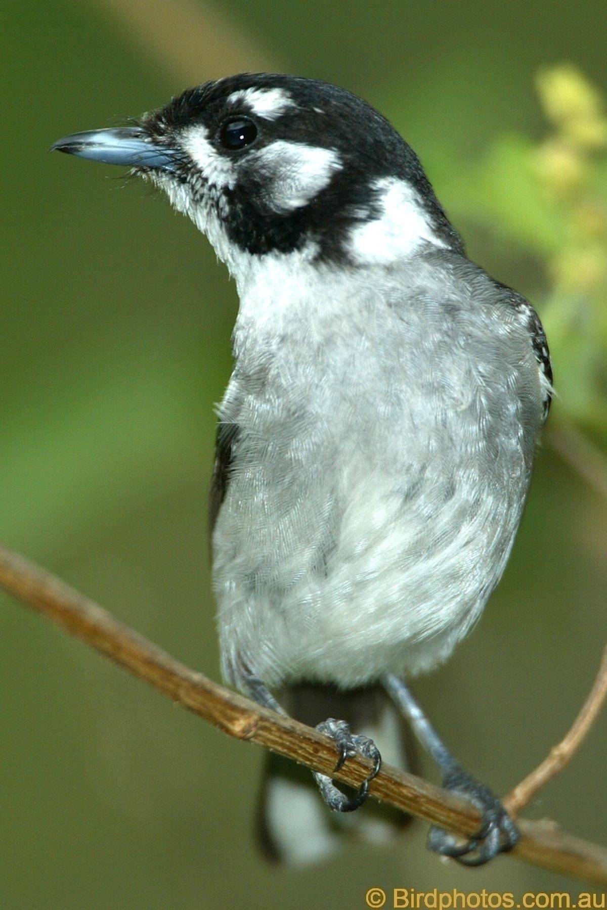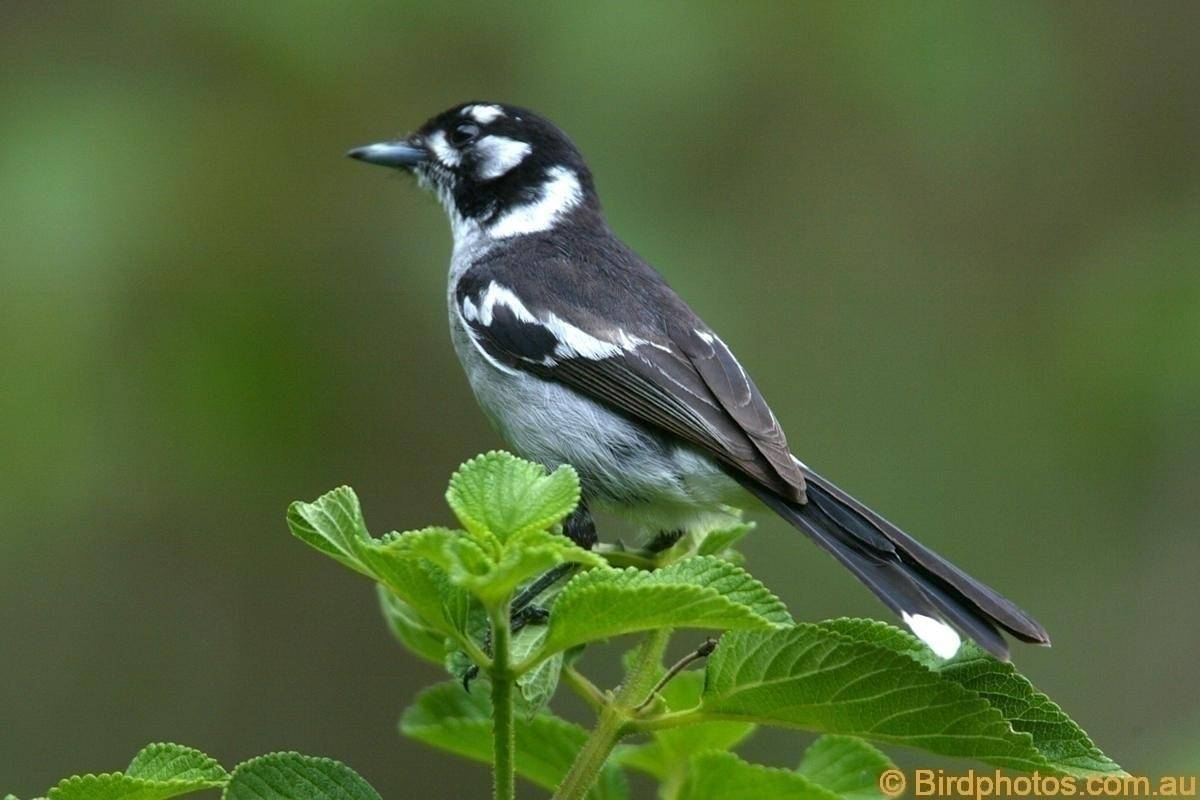 Size: 13cm Habitat: Found from Cape York down to Northern NSW, the White eared Monarch frequents rainforest and closed forests. Diet consists of insects caught in the forest canopy. Notes: Black and white bird with white ear patch, white chest and belly. Breeds Spring-Summer.