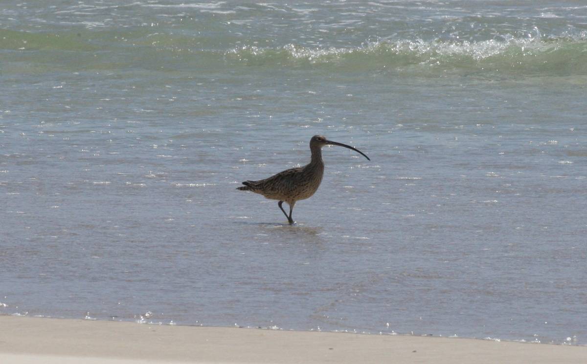 Size: 55-61cm Habitat: Distributed along most of Australias coastline. Inhabiting mudflats, mangroves and Coastal estuaries. Forages for crabs and molluscs. Very long curved down bill with pale eyebrow. Dark brown streaks with buff rump. Notes: Takes an annual migratory flight to Russia and north-eastern China to breed durin winter and arrives back to Australia in August.